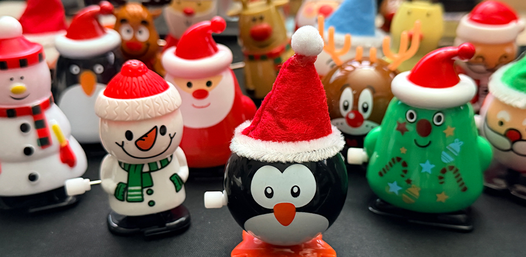 The raffle ticket that you win during Mom’s Christmas Bingo will determine the order at which each player will select a Christmas Wind-up Pal:
